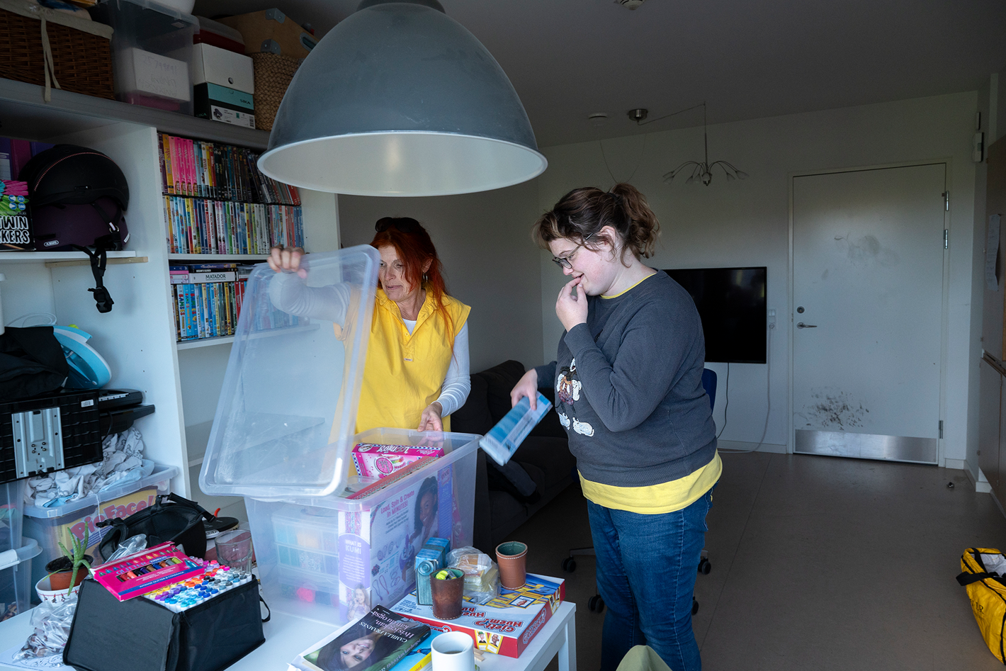 Cecilie er sammen med en medarbejder i gang med at rydde ud i de ting, hun ikke længere bruger. Foto: Hung Tien Vu