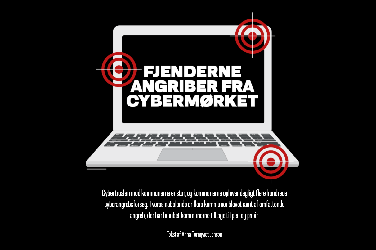 Ifølge tal fra KL oplever halvdelen af landets kommuner mere end 1.000 angrebsforsøg om dagen. Både cyberkriminelle, aktivister og fremmede statsmagter kan have interesse i at angribe kommunerne. Førstnævnte med penge som mål, og de to sidstnævnte i højere grad med et ønske om at destabilisere det danske samfund og skabe utryghed.