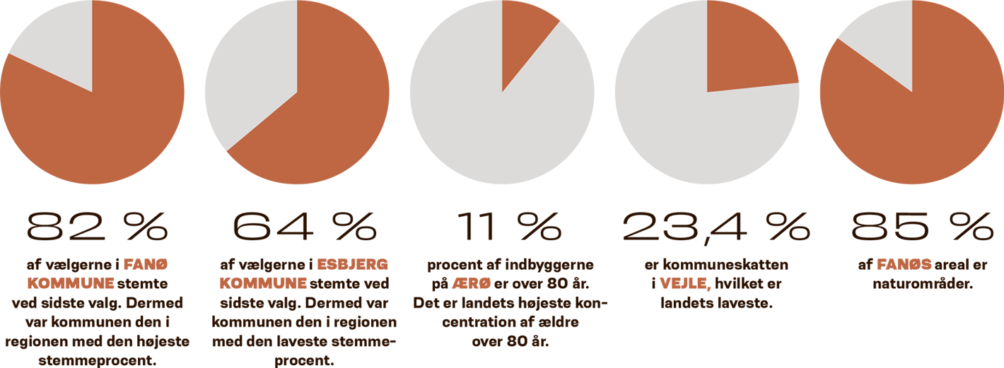 Kilder: De Kommunale Nøgletal, Indenrigs- og Sundhedsministeriet, kmdvalg.dk, Skatteministeriet, VisitDenmark, Danmarks Statistik, Business Esbjerg, Realdania og Danmarks Naturfredningsforening.